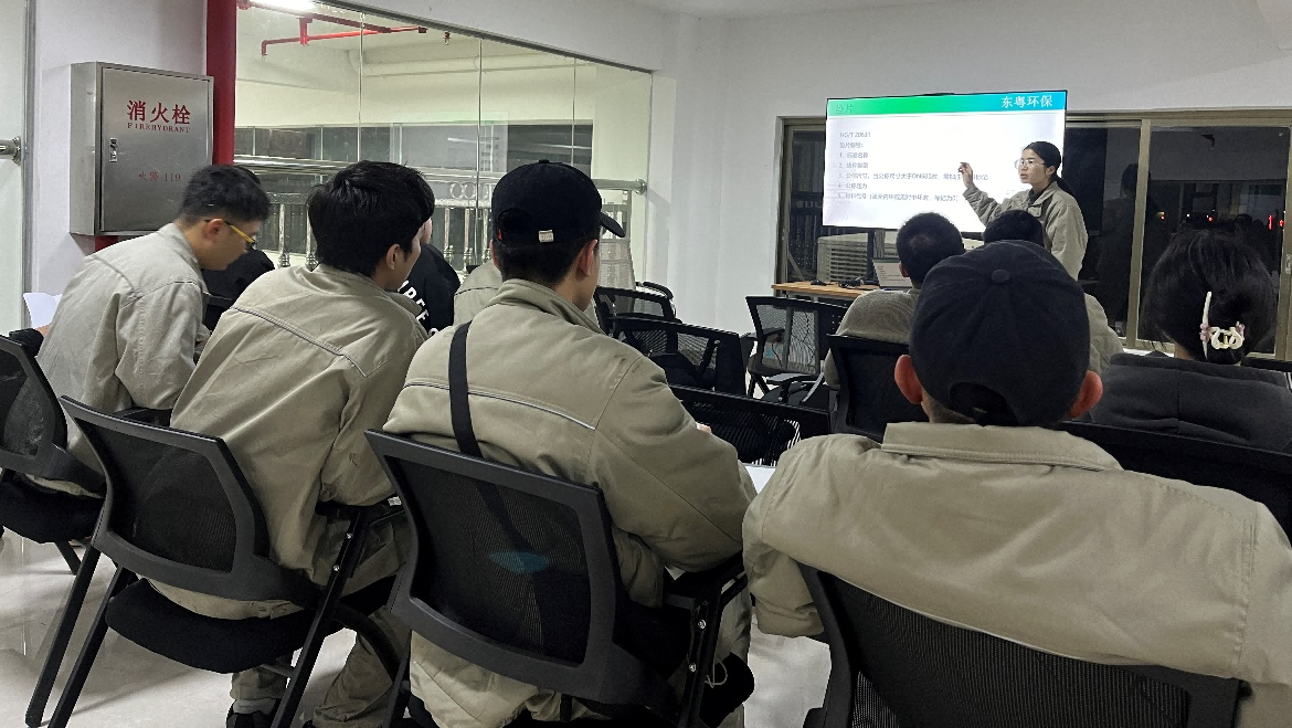 生產部技術骨干積極開展培訓工作,帶頭營造濃烈的學習與鉆研的氛圍,實實在在地拔高了員工的操作水平,為組建一支“有信仰,有膽識,有本領,有擔當”的四有東粵環保隊伍不懈努力。