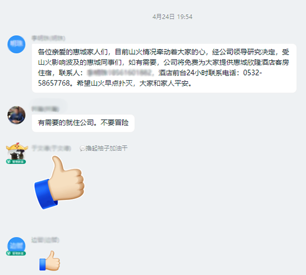 近?日,青島西海岸新區小珠山發生一起森林火災,因期間高山陣風風力陡增、山高地險,給火災撲救造成困難。4月24日晚,山火已蔓延至海爾大道附近,公司有不少員工居住在這一區域,山火的繼續蔓延嚴重威脅到他們的安全。[ 查看更多 ]