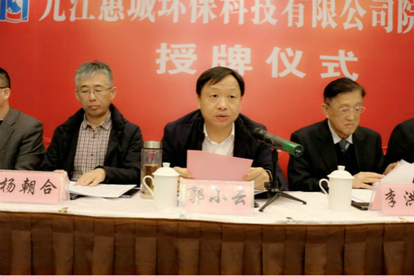 活動伊始,瑞昌市委書記郭小云代表瑞昌市委、市政府向蒞臨此次授牌儀式的各位領導和專家表示歡迎,他提出,希望九江惠城環(huán)??萍加邢薰灸芙柚菏抗ぷ髡具@一創(chuàng)新平臺,不斷提高科研能力和創(chuàng)新水平,著力把企業(yè)做大、做優(yōu)、做強。瑞昌市委、市政府也會積極為企業(yè)、為院士工作站開展工作提供優(yōu)質服務、創(chuàng)造良好條件、營造更好環(huán)境。