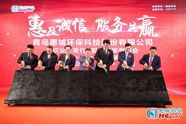 5月22日上午,青島惠城環保科技股份有限公司上市儀式在深圳證券交易所東門8樓大廳正式啟動。青島市地方金融監管局副局長王偉光、青島惠城環保科技股份有限公司董事長張新功、中德證券有限責任公司首席執行官段濤致辭,隨著開市寶鐘的敲響,惠城環保正式上市。