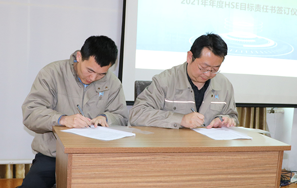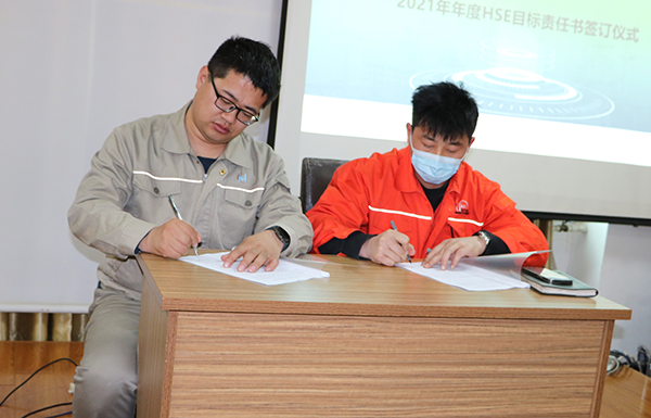 后公司總經(jīng)理與生產(chǎn)管理部、HSE管理部,生產(chǎn)管理部與設(shè)備管理部,設(shè)備管理部與維修維保方簽署了年度HSE責(zé)任書。
